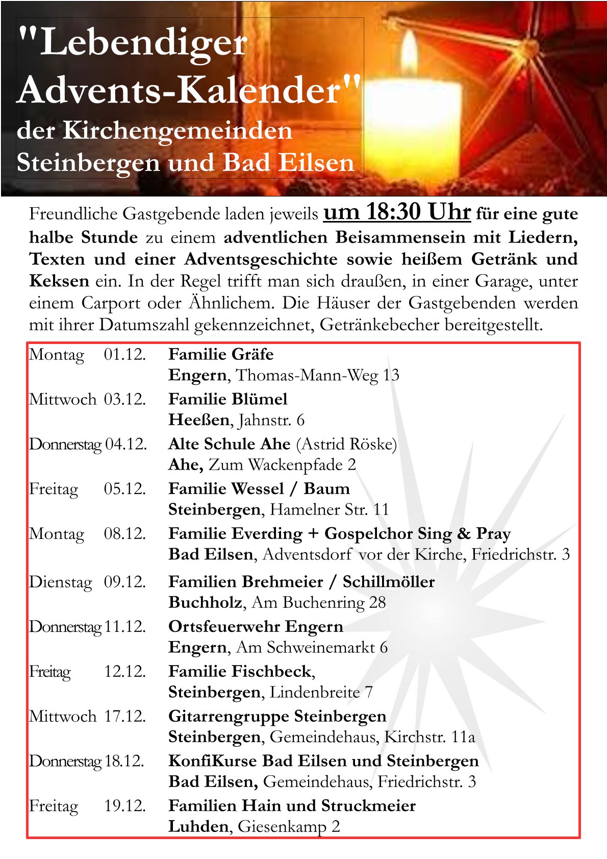 Herzliche Einladung, Advent zu erleben!